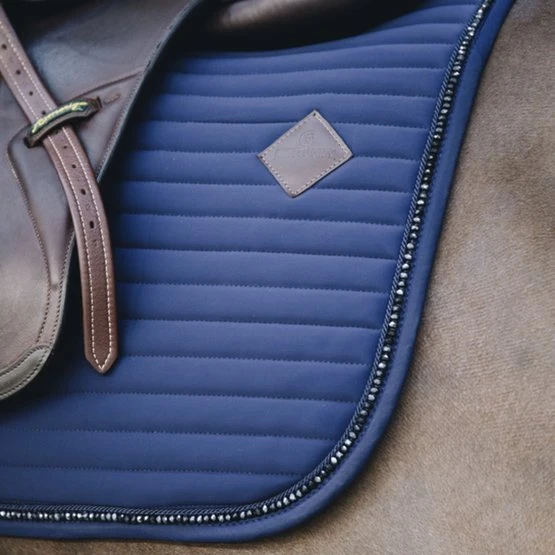 Unsere Schabracke Pearls mit der speziellen SpringenFormschützt das Pferd für unangenehmen Reibungen. Die Schabracke besteht aus einem hochwertigen