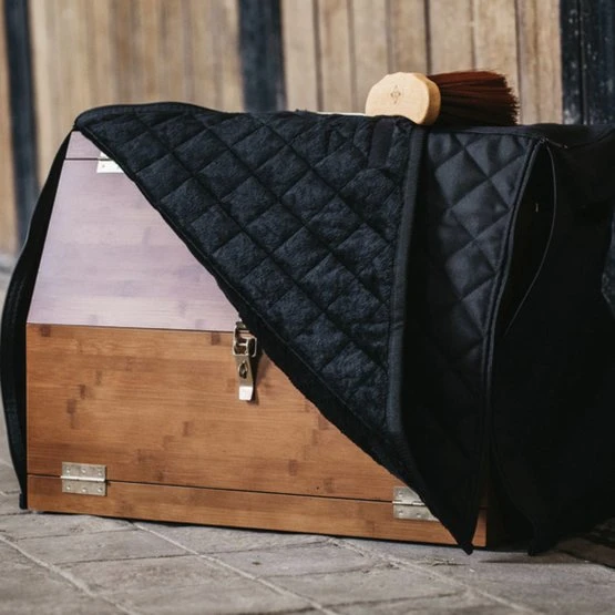Das perfekte Zubehör, um Kratzer auf Ihrer Show Grooming Box zu Hause oder beim Transport zu vermeiden. Die Show Grooming Box ist mit zwei Reißverschlüssen entlang der Box ausgestattet, sodass Sie sie mit dem Bezug weiter verwenden können. Die drei Öffnungen sorgen dafür, dass Sie die Griffe für einen einfachen Transport immer erreichen können. Im Lieferumfang sind zwei doppelte Klettbänder enthalten, damit Sie sie an der Show-Grooming-Box befestigen können. Um Reibung zu vermeiden, ist die Innenseite des Bezuges aus gefälschtem Kaninchenfell gefertigt. Das Rautenmuster sorgt für einen sehr edlen Look und passt perfekt zum Stil Ihres Stalls.