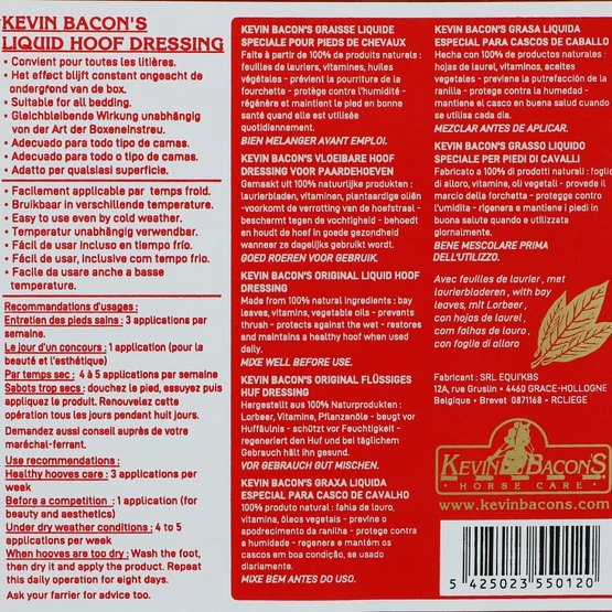 Kevin Bacons Hufverband ist eine Lorbeersalbe zur Pflege und zum Schutz der Pferdehufe. Um die Geschmeidigkeit, Elastizität und das richtige Gleichgewicht der Hufe des Pferdes zu erhalten, müssen sie mit Produkten bester Qualität behandelt werden. Kevin Bacons Hoof Dressing passt perfekt zu dieser Philosophie.