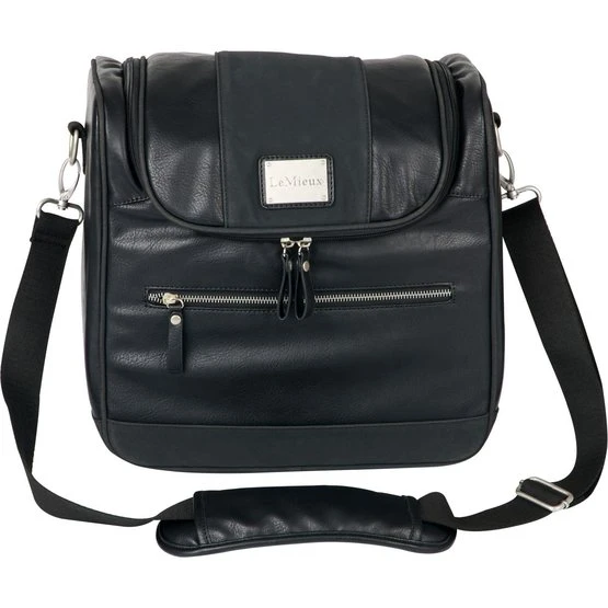 Elegante und stilvolle Pflegetasche aus PU-Leder mit strukturiertem Fach für Bürsten. Mit Details aus Wildlederimitat.