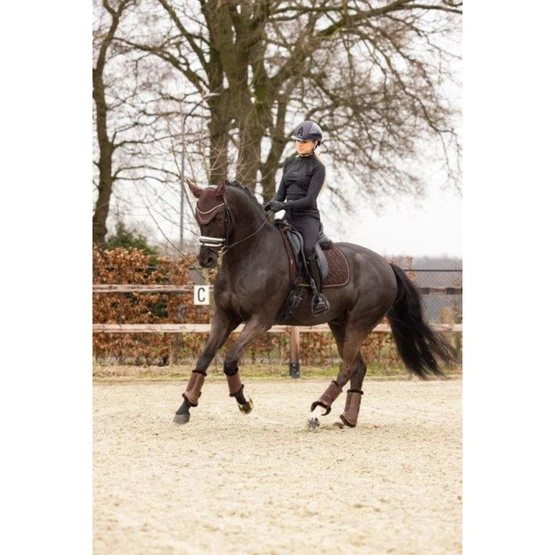 Die Crystal-Wildleder-Schabracke wurde für eine Reihe von Dressursätteln entwickelt und verfügt über ein Bambusfutter, einen Gurtschutzbereich aus PU-Leder sowie glitzernde und geflochtene Detailbesätze für einen ganz besonderen Look.