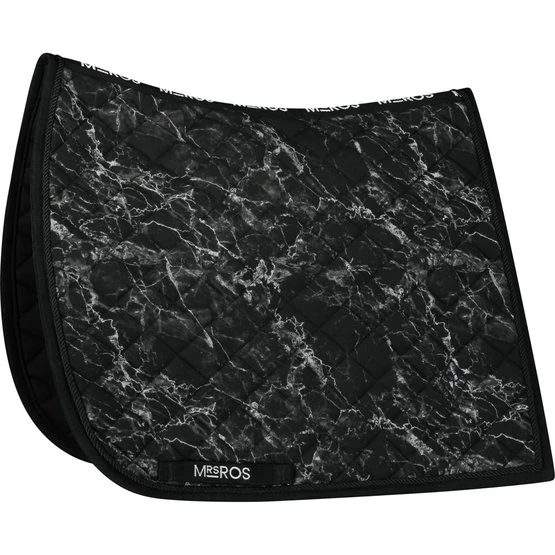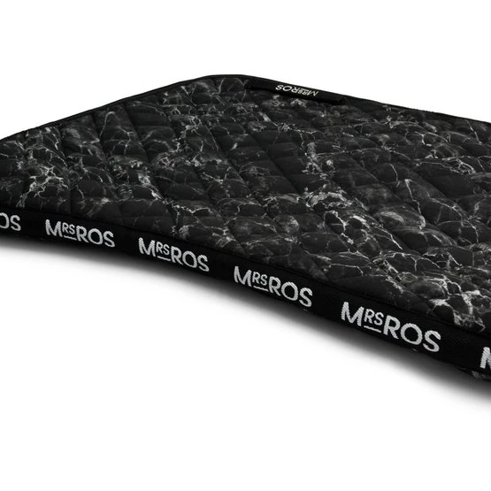 Unsere Charmer Dressurschabracke ist mit unserem schicken marmorschwarzen Aufdruck und dem durchgehend aufgestickten Mrs. Ros-Logo versehen.