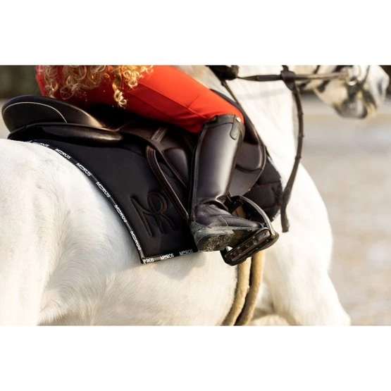 Die gesteppte Mrs. Ros Schabracke: ICONIC ist die perfekte Schabracke für Wettkampf und Training. Passen Sie die Schabracke Ihres Pferdes an Ihr gesamtes Reit-Ensemble an, um einen lustigen Reiter-Look zu erzielen. Hergestellt aus einem atmungsaktiven, gesteppten, matten Satinstoff, der hilft, die Körpertemperatur Ihres Pferdes zu regulieren. Gefüttert mit einer Baumwoll-Waffelstruktur, die den perfekten Halt bietet: Schweißabsorbierendes und anatomisches Design bietet die richtige Passform. Das pflegeleichte Baumwollmaterial nimmt Schweiß auf, weist Schmutz ab und bietet gleichzeitig antibakterielle Eigenschaften. Der strapazierfähige Stoff sorgt dafür, dass Ihre Reitunterlage trotz häufiger Abnutzung gut aussieht. Auf die Details kommt es an. Akzentuiert mit kontrastierenden Farben in der Kordelpaspelierung und -besatz: und mit einem silbernen oder goldenen Mrs. Ros-Metalllogo. Die perfekte: funktionale Reitunterlage zur Ergänzung Ihrer Reitausrüstungssammlung!