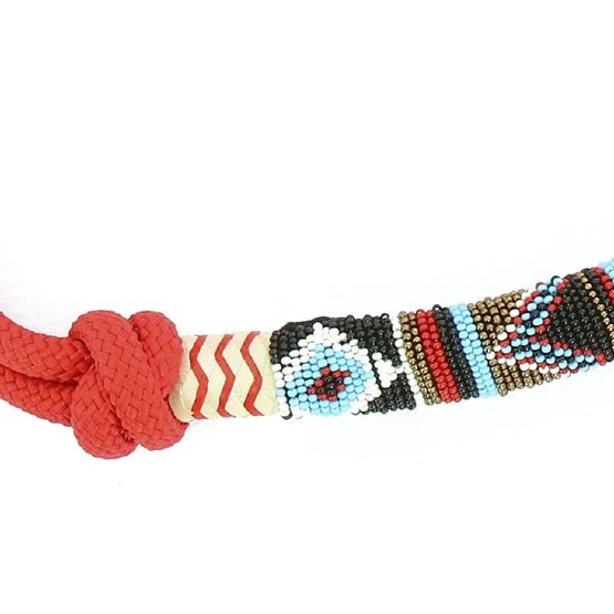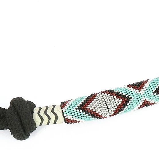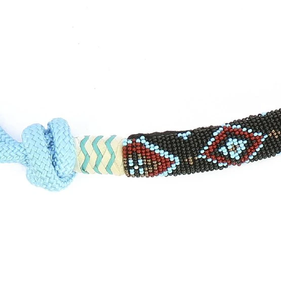 Vorgebundenes Halfter aus weich gewebtem Polypropylen, gefüttert mit einem schönen Zierelement mit Perlen am Nasenriemen.