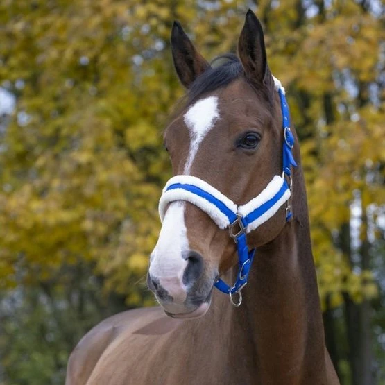 Sehr weiches Halfter. Sehr bequem dank des weichen Teddy-Fleece-Futters an Kopfbedeckung, Nasenband und Backen. Verstellbares Kopfstück und Nasenband. Je nach Modell silberne, farbige oder rosa Schnallen. Zusammensetzung: 100% Polypropylen, 100% Polyester-Teddyvlies.