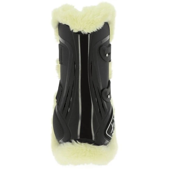 Offene Sehnenstiefel mit belüfteter Polyurethanschale, gefüttert mit synthetischem Schaffell aus 50% Acryl und 50% Polyester. Knopfverschluss.