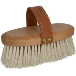 Kardätsche mit edler Lederhandschlaufe und langen, weichen Borsten. Selbst für empfindlichste Pferde geeignet. Pénélope Logo als Print auf dem Holz.