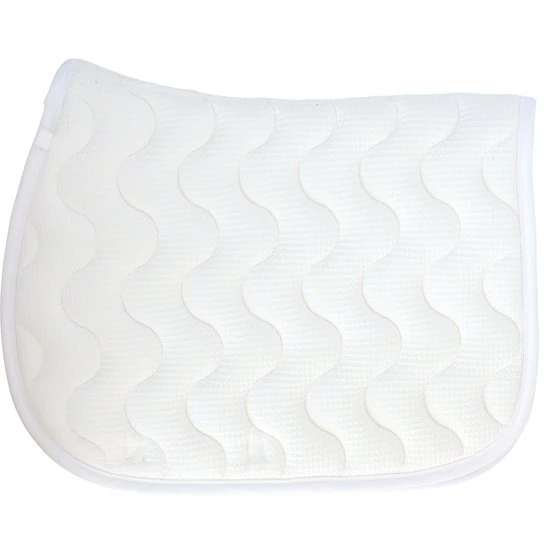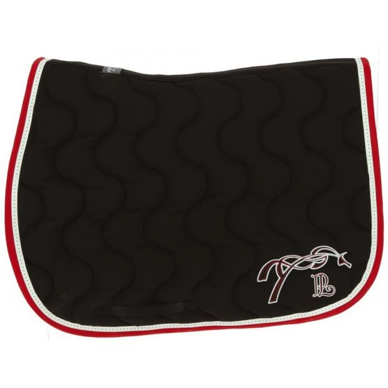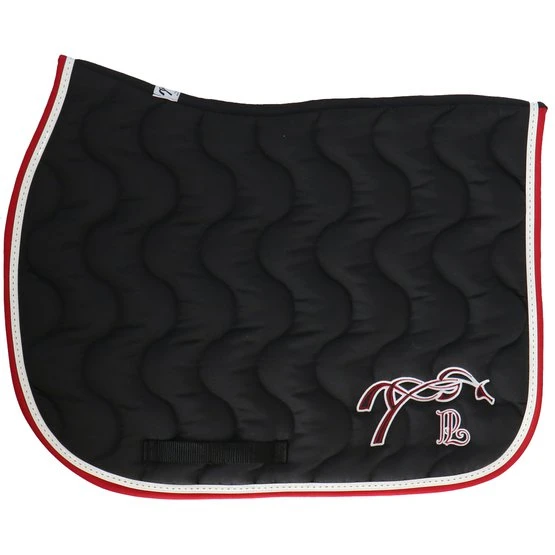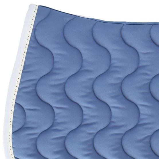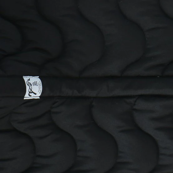 Schabracke mit Wellensteppung. Gefüttert mit weißem Waffelpikee. Nylongurtschlaufe auf beiden Seiten. Links aufgesticktes springendes Pferd. Material: Außen: 60 % Polyester + 40 % Baumwolle. Wattierung: 100 % Polyester. Unterlage: 100 % Baumwolle. Maschinenwäsche bei 30 °C, kein Trockner.