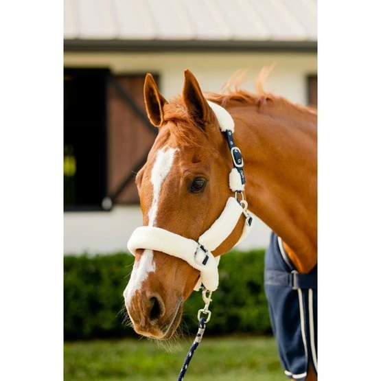 Ein bequemes, leichtes Halfter mit einem starken Nylonkern. Nylon und Schnallen sind mit superweichem künstlichem Schaffell überzogen, das selbst für das empfindlichste Pferd maximalen Komfort gewährleistet. Schnellöffnung auf der linken Seite mit Karabinerhaken. Die Größe kann auf beiden Seiten angepasst werden.