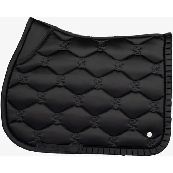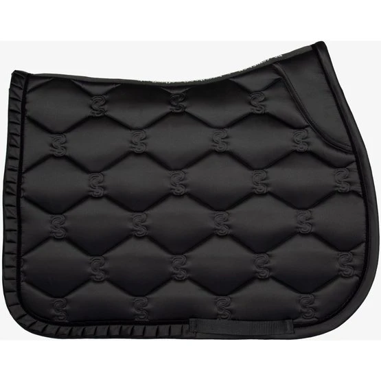 Anatomisch geformte Schabracke mit Rüscheneinfassung und dem ikonischen PS-Zitat entlang der Wirbelsäule. Unsere Schabracken bieten zusätzlichen Platz an der Unterseite und unsere einzigartigen Stoppkissen, die die Schabracke unter dem Sattel an Ort und Stelle halten. Die Unterseite besteht aus feuchtigkeitstransportierendem Quick-Dry-Material und die Oberfläche ist schmutzabweisend.