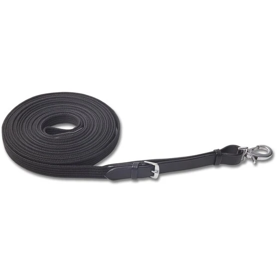 Longierleine aus Gurtband. Nach LPO Richtlinie ohne Wirbel und ohne Lederstege. Mit Handschlaufe und austauschbarem Karabinerhaken.