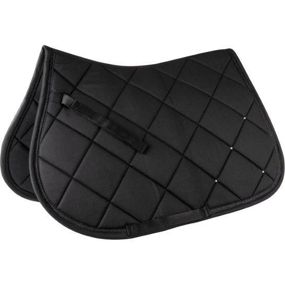 Elegante, hochwertige Schabracke mit Glitzerband. Die zusätzlichen Glitzersteine machen diese Schabracke zu einem echten Hingucker. Die funktionelle Unterseite sorgt für eine optimale Atmungsaktivität. 8 mm Schaum und 250 g/m² Watte gewährleisten beste Druckverteilung.