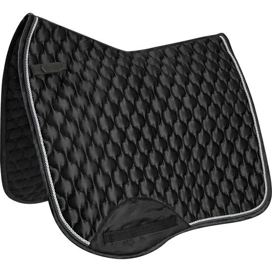 Elegante, hochwertige Schabracke in Seidenoptik. Die zusätzliche Gurtverstärkung sorgt für optimalen Schutz. Die funktionelle Unterseite sorgt für eine optimale Atmungsaktivität. 10 mm Schaum und 200 g/m² Watte gewährleisten beste Druckverteilung. Mit kurzen Sattelschlaufen
