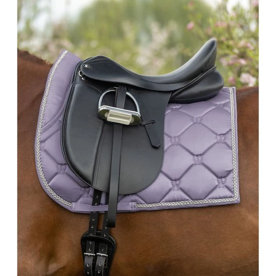 Elegante, hochwertige Schabracke in Seidenoptik. Die funktionelle Unterseite sorgt für eine optimale Atmungsaktivität. 10 mm Schaum und 200 g/m² Wattierung gewährleisten beste Druckverteilung.