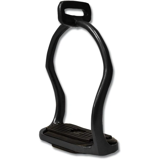 Edelstahlbügel mit geschwungenen Schenkeln und 90° gedrehter Bügelriemenöse. Mit schwarzer Gummieinlage. Paar.